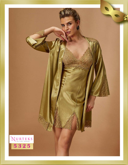 Satin with Lace Lingerie Nightgown with Robe Set 5325