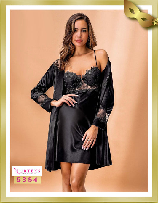 Satin with Lace Lingerie Nightgown with Robe Set 5384