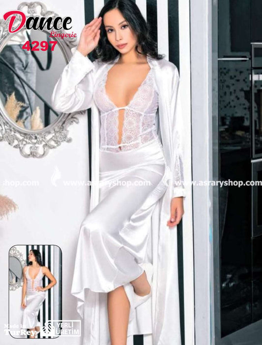 Long Satin with Lace Lingerie Nightgown & Robe Set 4297